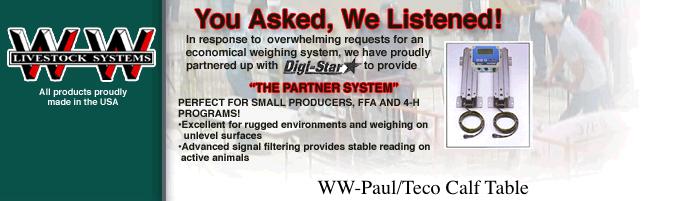 The WW-Paul/Teco Calf Table is designed to work calves up to 600 lbs. It comes with a head catch and a side squeeze bar designed for holding the animal in place. The table is well balanced allowing easy tilt over. The ratchet driven dally rope on the rear gate draws the rear legs back, thus giving greater access for working the calf. Please Specify Right or Left Brand Side when ordering.